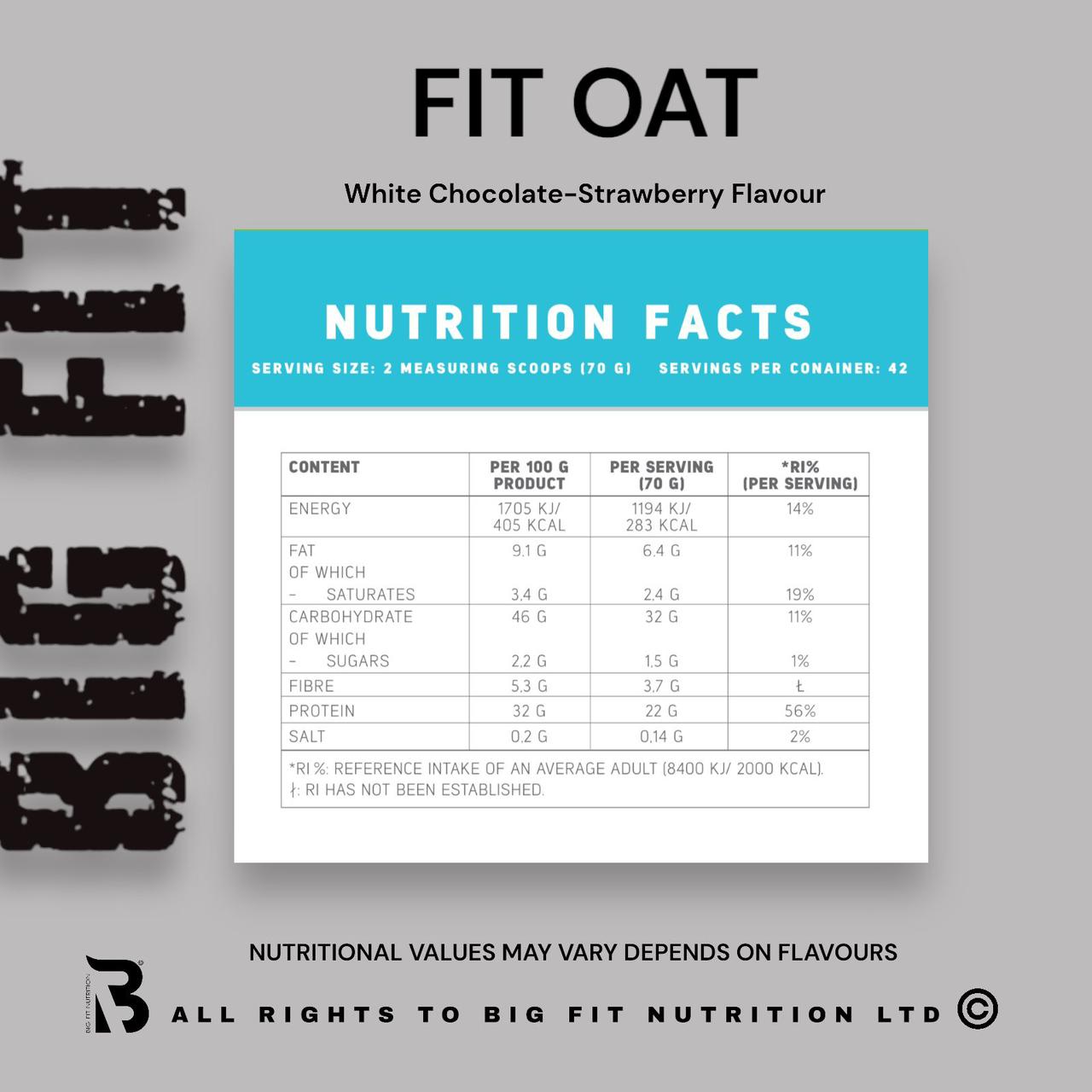 Fit Oat , Oats and whey are foundational foods for any active adult. Naturally low in sugar, oats supply slow-burning complex carbohydrates and hunger-filling dietary fiber. Whey proteins are quickly digested and provide the full range of essential amino acids -branched chain amino acids (BCAAs). Each serving packs in 22grams of whey protein and as much fiber as a big bowl of oatmeal. It tastes great,